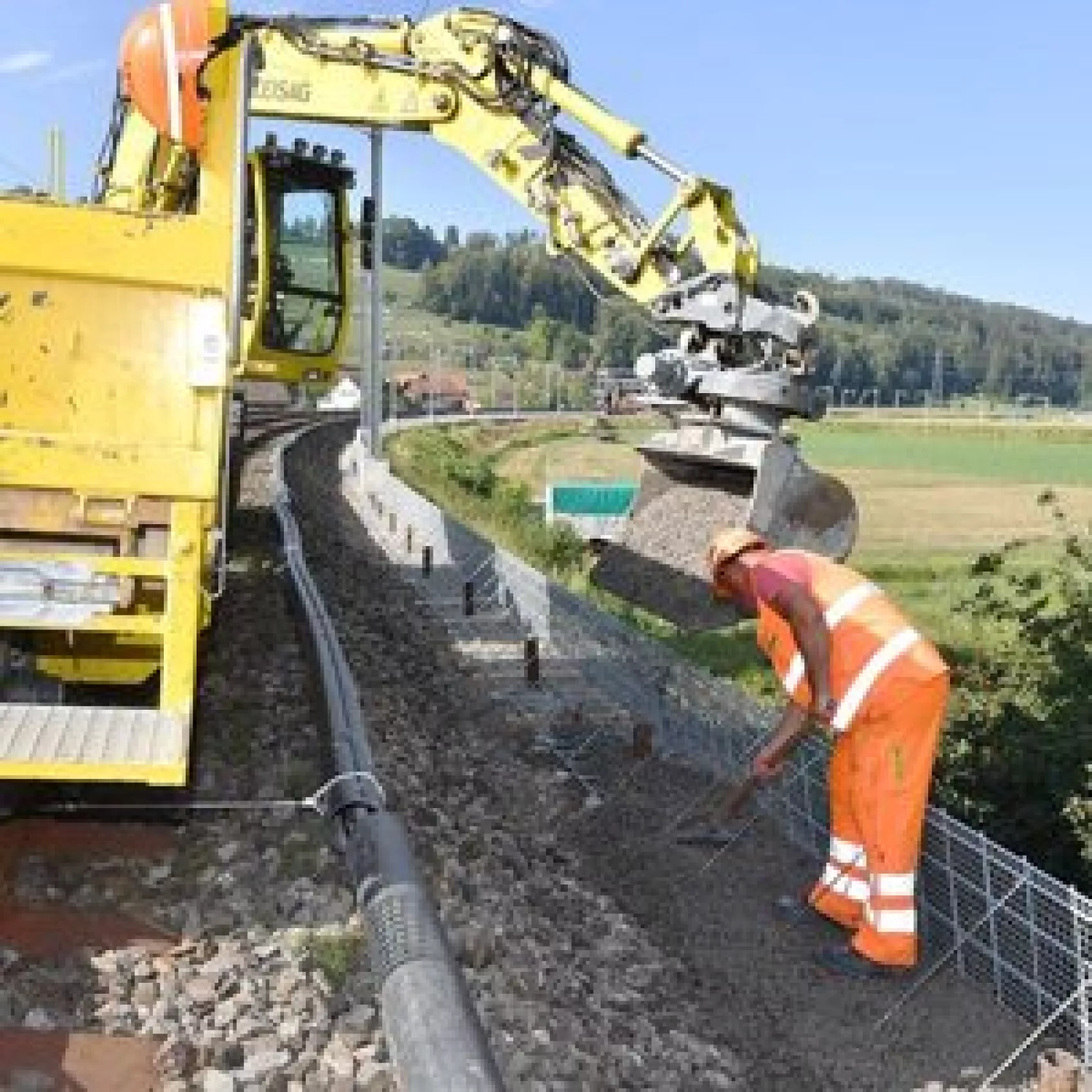 Un pare ballast drainant, léger et installé rapidement !Le système Rüglei est particulièrement adapté à la stabilisation des accotements de voies ferrées et routières.